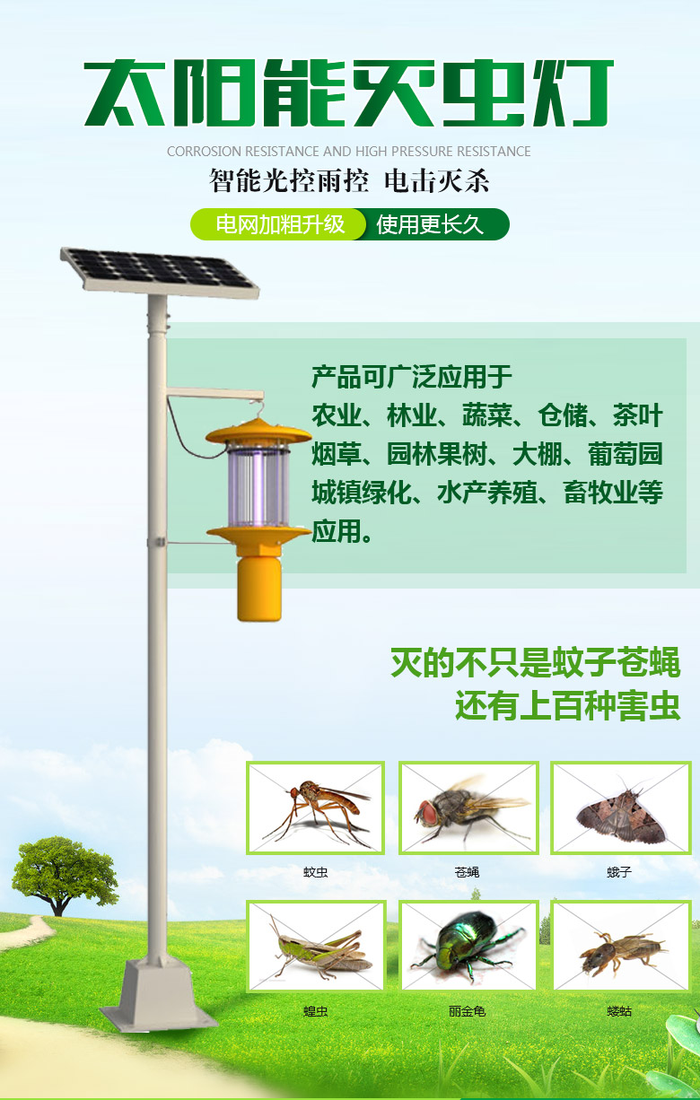 頻振式殺蟲燈等工具的應(yīng)用能保綠色蔬菜健康生長嗎?我們都知道,蔬菜生長中是容易遭致害蟲的,且不同害蟲帶來的影響也不同,為了降低害蟲對蔬菜產(chǎn)量的影響,蔬菜種植戶是需要對蔬菜病蟲害進(jìn)行有效防治的。但在殺蟲燈出現(xiàn)前,種植戶防治蔬菜病蟲害主要依靠農(nóng)藥化肥,然而農(nóng)藥化肥長年累月的增加使用,給農(nóng)產(chǎn)品帶來了很大弊端。農(nóng)藥殺蟲的原理是通過有毒的化學(xué)藥劑來殺死害蟲,這些藥劑在殺死害蟲,也會對農(nóng)作物的土壤、環(huán)境和農(nóng)作物影響,一旦農(nóng)藥殘留在農(nóng)產(chǎn)品或土壤中,那么農(nóng)產(chǎn)品和土壤品質(zhì)機(jī)會受影響,蔬菜也就不“綠”了。