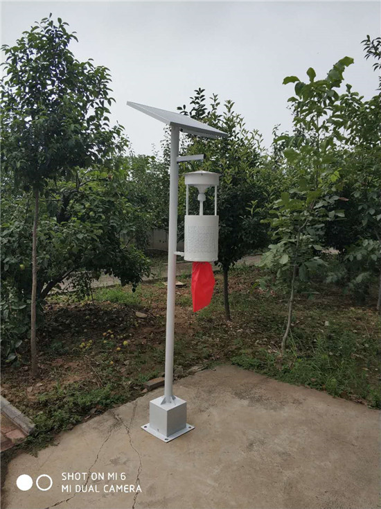 太陽能殺蟲燈是利用害蟲的較強趨光、波、色、味特性,將光波設在特定范圍內,近距離用光,遠距離用波加以色和味誘殺成蟲,燈外配以電壓網觸殺,使害蟲落入燈的袋子中,以達到殺滅成蟲,控制為害的目的。另一方面它選用了能避開誘集天敵的光源、波長和波段,從而又達到了保護天敵的效果。每只燈可控面積60畝,輻射果園面積約5000畝,每燈每日可誘捕害蟲900余只,降低害蟲落卵量70%左右,用藥次數減少6次,藥劑防治減少65%左右。