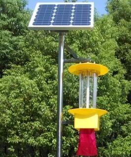 太陽能殺蟲燈是利用太陽能電池板作為用電來源,其將白天太陽能發(fā)的電貯存起來,晚上放電給殺蟲燈具,供其工作。殺蟲燈具是利用昆蟲具有較強(qiáng)的趨光、趨波、趨色、趨性的特性原理,確定對昆蟲的誘導(dǎo)波長,研制專用光源,利用放電產(chǎn)生的低溫等離子體,紫外光輻射對害蟲間生的趨光興奮效應(yīng),引誘害蟲撲向燈的光源,光源外配置高壓擊殺網(wǎng),殺死害蟲,使害蟲落下專用的接蟲袋內(nèi),達(dá)到滅殺害蟲的目的。